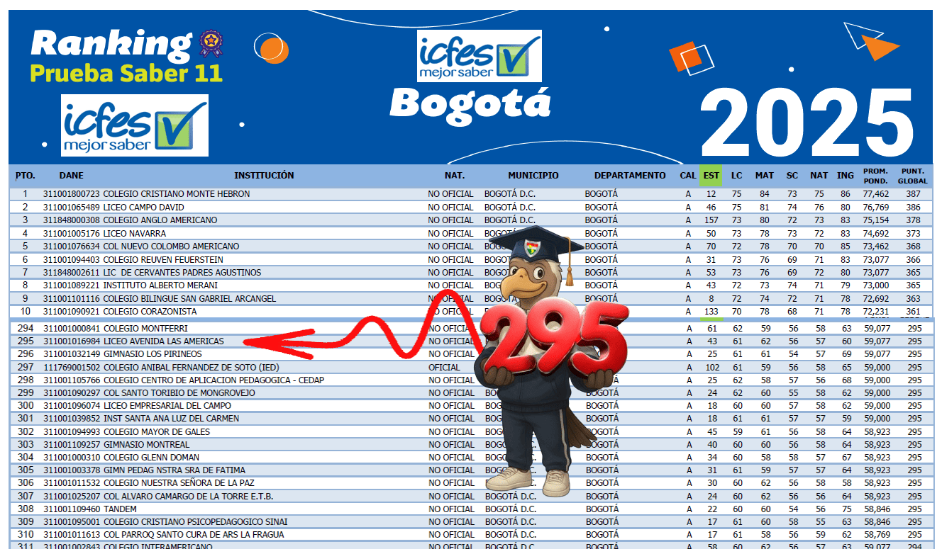 POR TAN EXCELENTE PUESTO OCUPADO EN BOGOTA (145) Y A NIVEL NACIONAL (536).